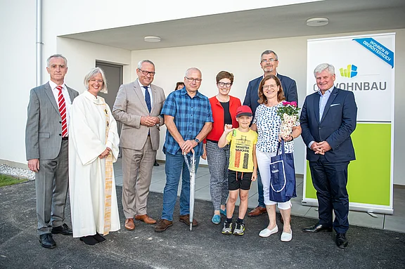 Am Titelbild: Dr. Markus Rosinger, MSc (Geschäftsführer OÖ Wohnbau), Dipl. Pass.in Barbara Hofwimmer, Landtagspräsident Wolfgang Stanek, Familie Johann und Marion Haberpointner mit Sohn Thomas, Bürgermeisterin Dr. Elisabeth Kölblinger, LAbg. AKR Rudolf Kroiß und Dr. Ferdinand Hochleitner MBA (Geschäftsführer OÖ Wohnbau)